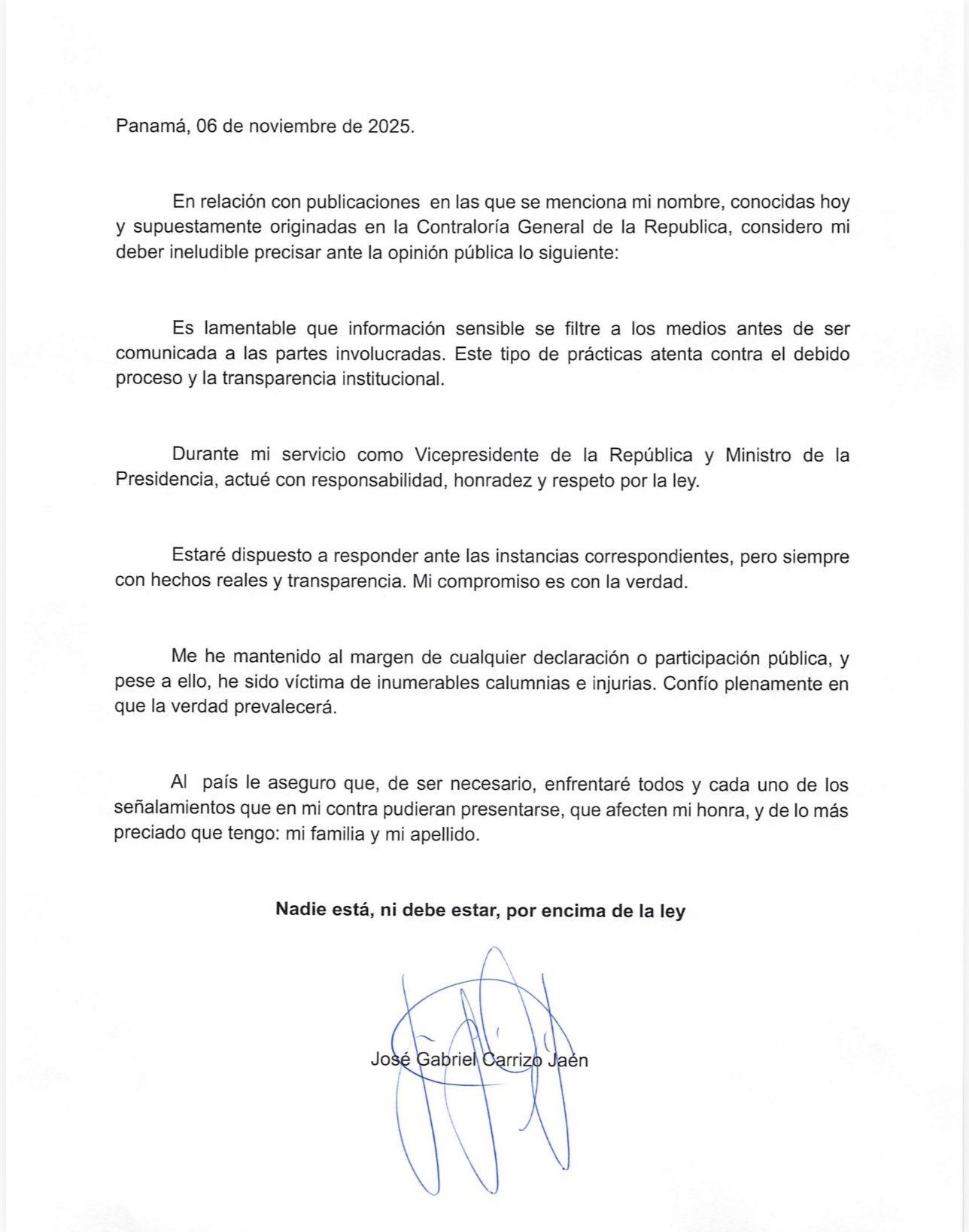 José Gabriel Carrizo lamentó que se haya filtrado a los medios una resolución de la Contraloría General de la República en la que se resuelve secuestrar bienes y cuentas bancarias en las que aparezca el nombre del ex candidato a la presidencia por el Partido Revolucionario Democrático (PRD)