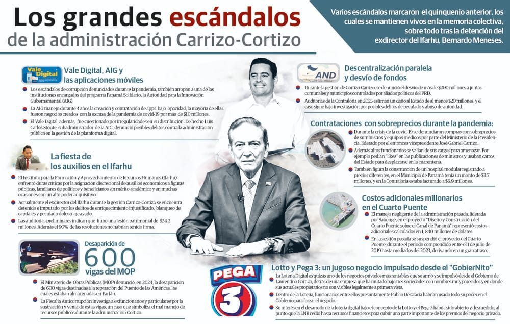 Además del escándalo por el hospital modular, los auxilios económicos del Instituto de Formación y Aprovechamiento de Recursos Humanos (Ifarhu), la descentralización paralela, entre otros.