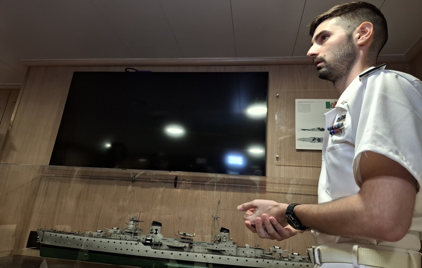 Un réplica a escala del Montecuccoli adorna una de las salas del buque. Foto: Grupo Epasa