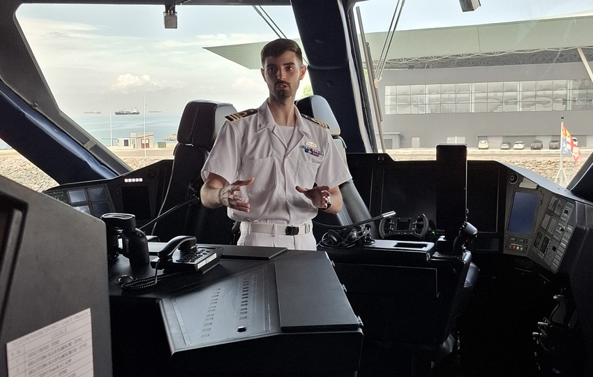 El teniente naval Simóne Farina durante una visita a la cabina de mando. Foto: Grupo Epasa