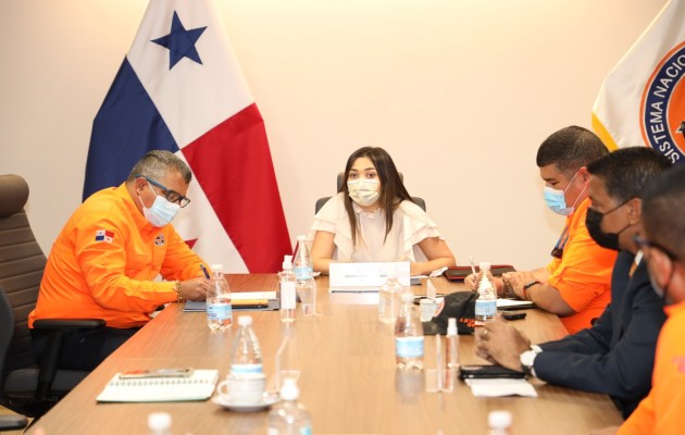 Así como el subdirector general del Sinaproc, Adherbal De La Rosa; Jaime Posso, administrador del Sinaproc; Yira Campos, jefe de Prevención y Mitigación; Yasmín Delgado, jefa del COE; César Lange, Jefe de Rescate y Yasser Del Cid, jefe de Voluntarios.