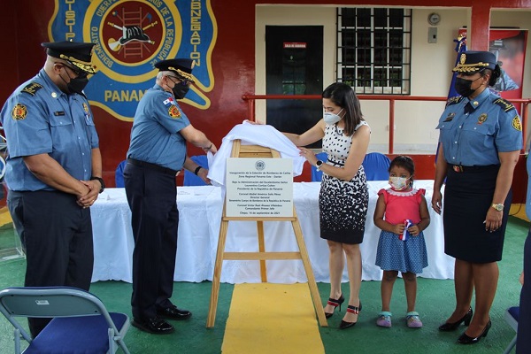 El acto contó con la participación de la ministra de Gobierno, Janaina Tewaney Mencomo y el Cnel. Abdiel Solís Pérez, director general del Benemérito Cuerpo de Bomberos de la República de Panamá (BCBRP),.