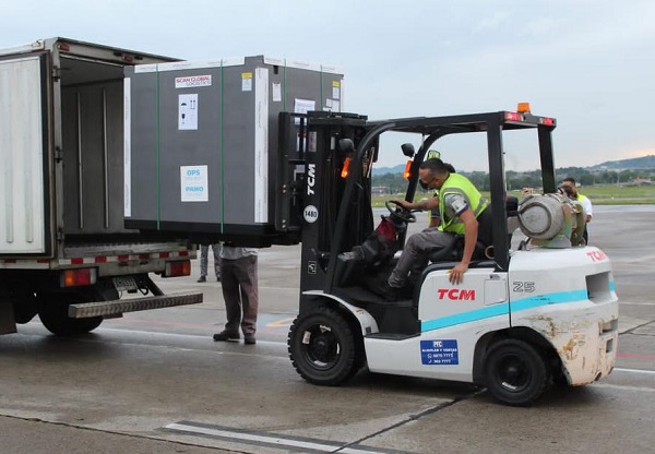 Llegada de la vacuna de AstraZeneca en el área de cargas del Aeropuerto Internacional de Tocumen. Foto: Cortesía Minsa
