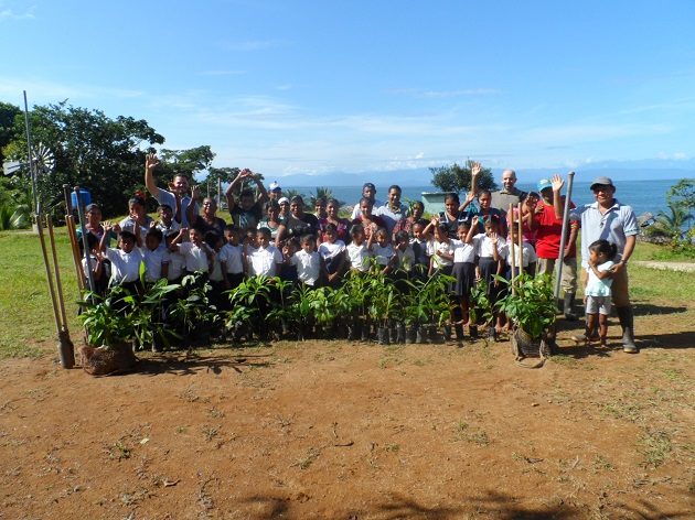 Me dice que hoy serán sembrados por voluntarios de la comunidad de Playa Hermosa, y por los estudiantes, como parte del programa de la Cooperación Española, para arborizar la toma de agua cruda del dilatado proyecto de acueducto rural que no termina de construir el Ministerio de Salud.