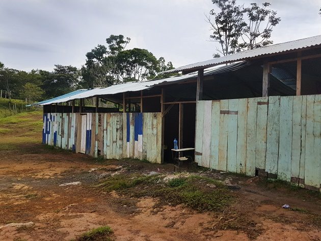 En ese momento me dirijo al comedor escolar. Los padres de familia han construido un espacio con horcones de palo y techo de zinc, que según me cuentan, cada vez que la inclemencia del tiempo lo derriba, lo vuelven a construir.