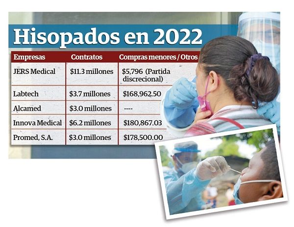 Al Gorgas, le entregó 53 kits por $49,608, mientras que al Instituto Oncológico le suministró 53 kits por $96,350.29.