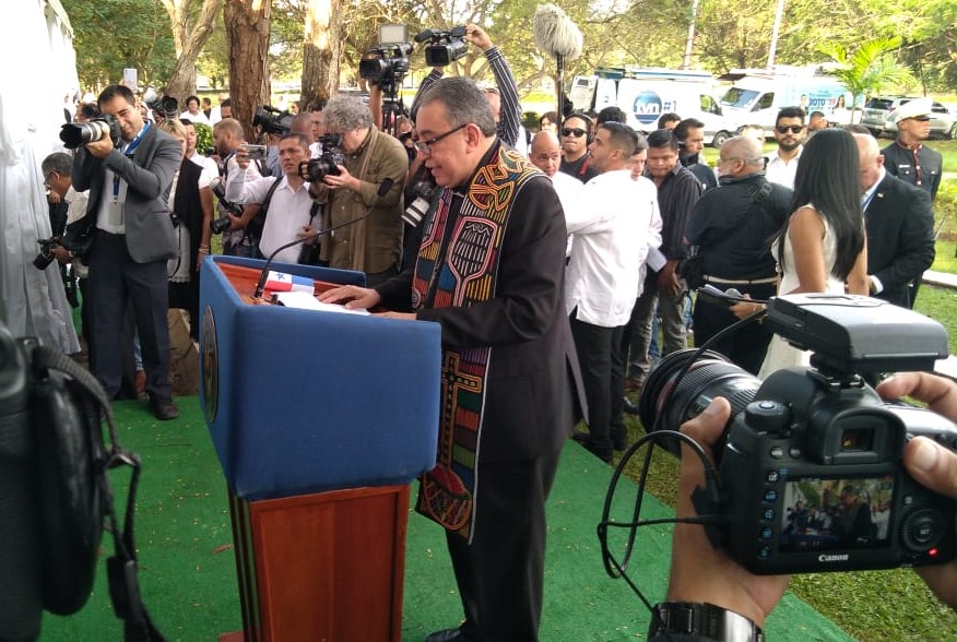 El Monseñor José Domingo Ulloa participó en los actos de conmemoración de la Invasión de Estados Unidos a Panamá, en el Jardín de Paz. Foto Luis Ávila