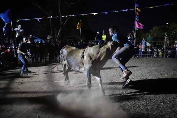 A los bovinos "lo sacamos del camión, se les amarran sogas delante y atrás para que brinquen y lo monta" el retador, que debe permanecer el mayor tiempo posible sobre el animal, explica González.