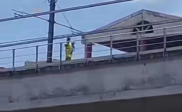 Una vez salió del túnel, caminó por la pasarela del tramo elevado, a la vista de los transeúntes que circulaban a esa hora.