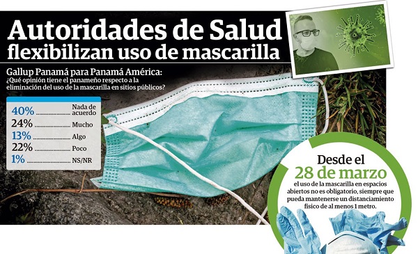 Más del 50% de los encuestados por Gallup Panamá expresaron estar poco o nada de acuerdo con eliminar la mascarilla en sitios públicos. Médicos defienden la medida en medio de una disminución de los contagios y esperan que la medida pueda alcanzar los planteles educativos.