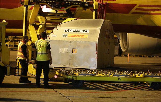La viceministra de Salud (Minsa), Ivette Berrio, recibió la nueva remesa, que llegó al Aeropuerto Internacional de Tocumen en un vuelo de la compañía DHL y fue trasladada al Programa Ampliado de Inmunización (PAI).