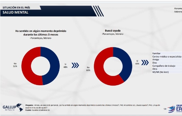 Panamá no es ajeno a esta realidad, la reciente encuesta de la firma Gallup Panamá para el Grupo Epasa sobre la situación del país en medio de la pandemia de covid-19, reveló que 48% de la población encuestada había sufrido algún episodio de depresión en los últimos 3 meses, y solo 40% buscó algún tipo de ayuda.