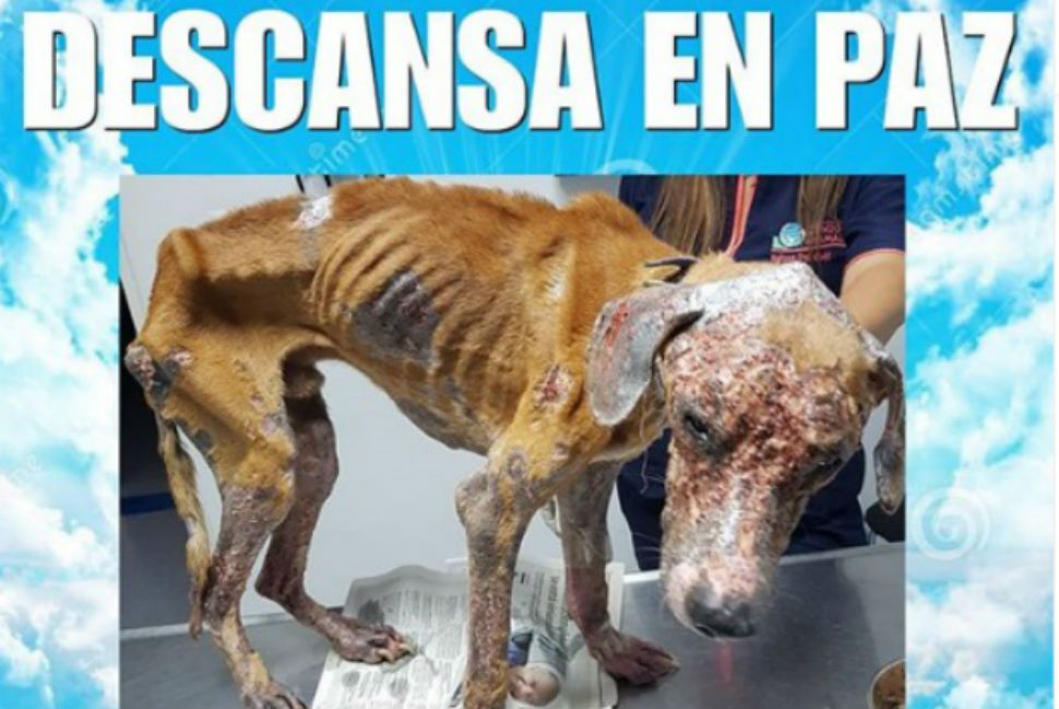El perro enfermo de la piel y en evidente estado de desnutrición, también presentaba heridas profundas, piel delgada que dejaba ver sus huesos, la debilidad que presentaba no le permitía sostenerse, detalló personal de la fundación Defensores de Los Animales que atendió al desafortunado animal.