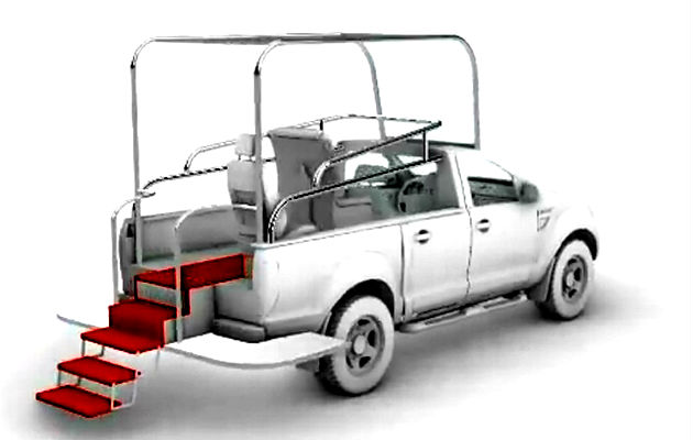 El auto fue cortado y modificado de la cabina delantera para atrás y cumple con los estándares de seguridad exigido por el Vaticano para el evento.