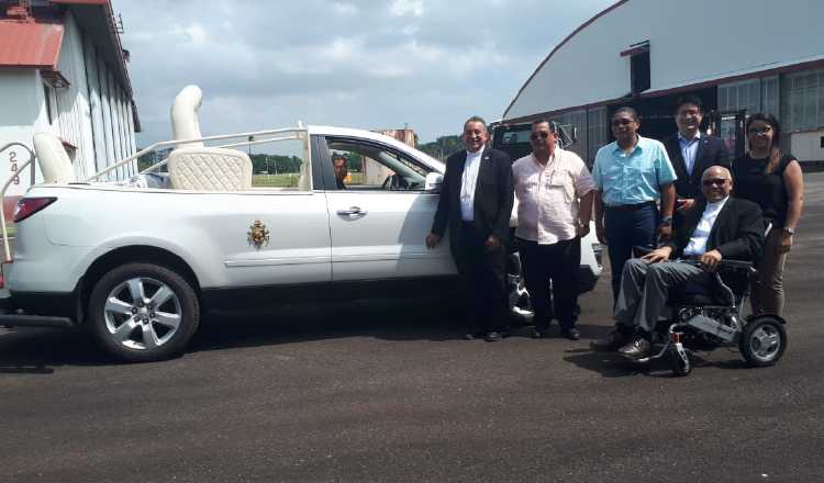 El vehículo fue prestado por la Conferencia Episcopal de Colombia y fue recibido por el arzobispo de Panamá, José Domingo Ulloa, y el viceministro de Seguridad, Omar Pinzón.