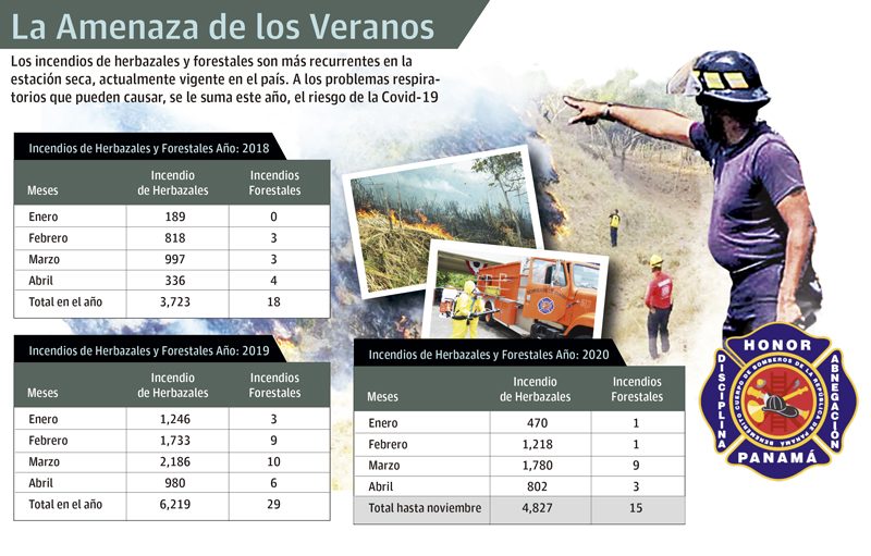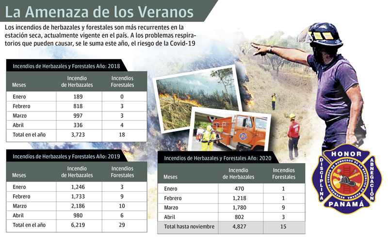 Arriba del 90% de los incendios de herbazales y forestales ocurren en los primeros cuatro meses del año, que es cuando predomina la estación seca y los fuertes vientos en el istmo.