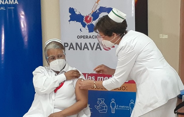 La enfermera Violeta Gaona de Cocherán fue la primera persona vacunada contra la covid-19 en Panamá. Foto: Víctor Arosemena
