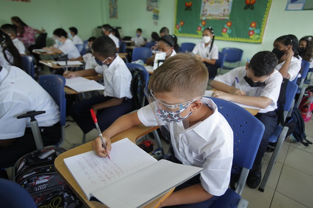El retorno a las clases presenciales en Panamá este 7 de marzo comenzó con la utilización obligatoria de la mascarilla por parte de los estudiantes y docentes.