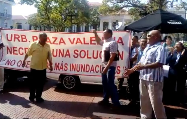 Un grupo de residentes de la urbanización Plaza Valencia, en Panamá Norte, protesta en Plaza Catedral, porque aún no han recibido, de parte de las autoridades, una solución a las inundaciones.