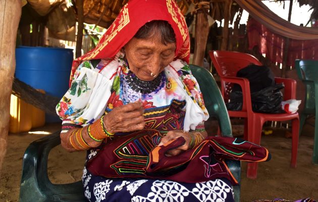 Entre los bohíos de paja y caña brava en la Comarca Guna Yala, lejos de los rascacielos y el tráfico de la ciudad de Panamá, Sipu Mayan de 88 años beneficiaria del programa 120 a los 65 del Ministerio de Desarrollo Social (Mides) teje con una visión milimétrica diseños geométricos vibrantes en camisas, bufandas, trajes y otras prendas conocidas como mola.