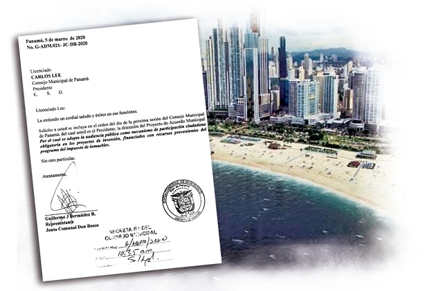 A través de una misiva, el representante del corregimiento de Don Bosco, Guillermo Bermúdez, solicitó al presidente del Consejo Municipal, Carlos Lee, incluir en el orden del día de la sesión del próximo martes 11 de marzo, un proyecto de acuerdo que somete a votación la suspensión de la consulta ciudadana del proyecto "Recuperación integral de los espacios de uso público, la movilidad urbana y las playas de Calidonia y Bella Vista".