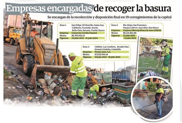 Estas compañías operan en 19 de los 26 corregimientos de la capital, en tanto que la Autoridad de Aseo Urbano y Domiciliario (Aaud) solo se encarga de los siete corregimientos ubicados hacia el este del distrito (Pedregal, Tocumen, 24 de diciembre, Mañanitas, Pacora, San Martín y Las Garzas).