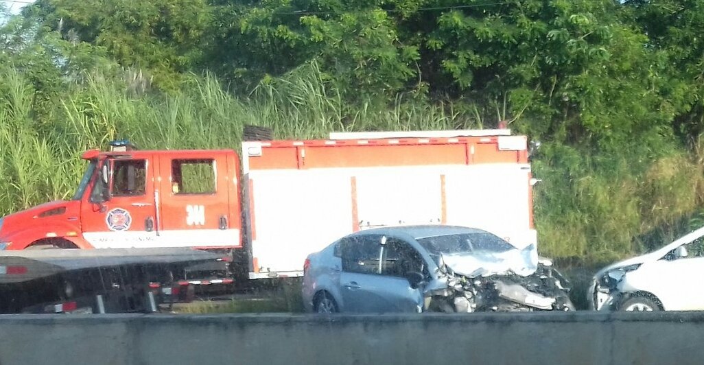 En horas de la mañana se registró gran congestionamiento vehicular por la triple colisión de autos en la autopista Arraiján- La Chorrera cerca del puente Perurena
