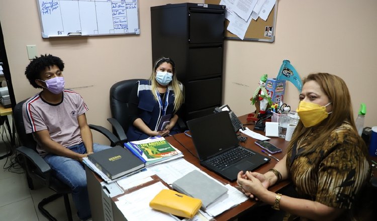 Momentos en que el caso del joven afectado (izquierda) era expuesto en la Dirección Nacional de Educación Particular del Meduca. Foto: Cortesía