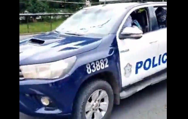 El video donde se observa a personas encapuchadas a bordo del auto Pick up #83882 de la Policía Nacional, que presumían en medio de la vía Simón Bolívar (Transístmica), circuló esta tarde en los medios de comunicación y redes sociales.