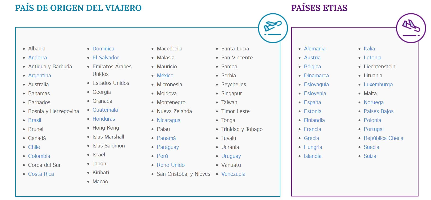 La autorización ETIAS, por tanto, será un requisito de viaje obligatorio y destinado a los ciudadanos de los más 60 países que actualmente están exentos de tramitar una visa para ingresar a cualquiera de los estados del Área Schengen, el espacio compuesto por: Alemania, Austria, Bélgica, Dinamarca, Eslovaquia, Eslovenia, Estonia, España, Finlandia, Francia, Grecia, Hungría, Islandia, Italia, Letonia, Liechtenstein, Lituania, Luxemburgo, Malta, Noruega, Países Bajos, Polonia, Portugal, República Checa, Suecia, Suiza.