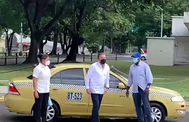 ¿Un taxi circulando en plena cuarentena total? Fue la primera interrogante que se hicieron periodistas, camarógrafos y fotógrafos que esperaban el inicio de los actos oficiales en conmemoración de los 57 años de la gesta patriótica del 9 de enero de 1964.