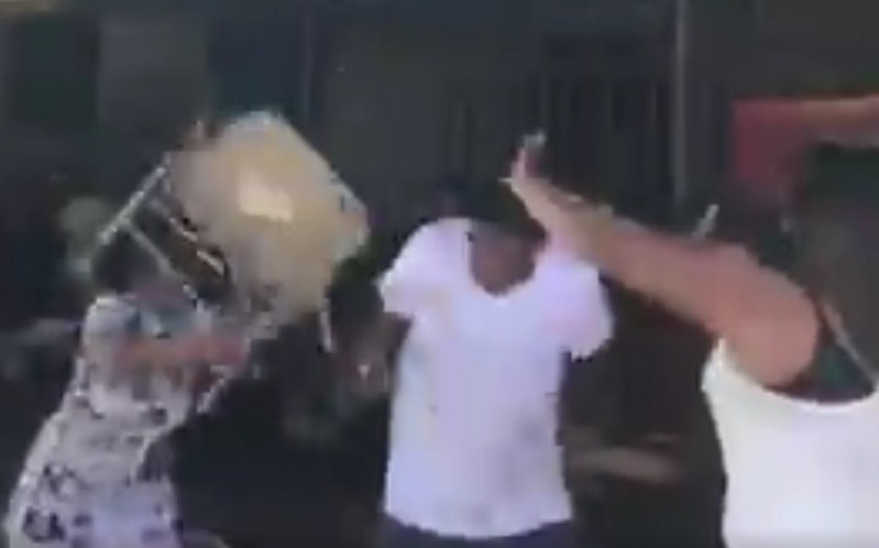 La trifulca explotó cuando una mujer tomó una silla de metal y golpeó en la espalda a un sujeto.
