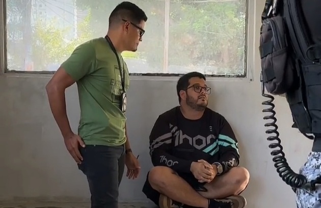 Mauricio Valenzuela en la estación de policía tras el incidente.