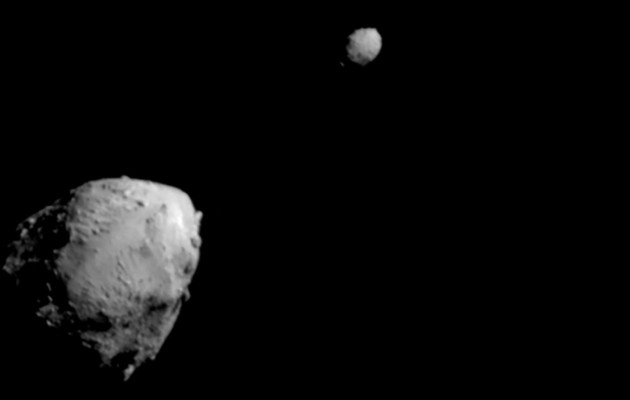 Dimorphos ("dos formas", en griego) es un cuerpo espacial de 160 kilómetros de diámetro parecido a una luna y que gira alrededor de Didymos, de 780 metros de diámetro y cuyo nombre significa "gemelo" en griego. Fueron seleccionados por la NASA porque no suponen ninguna amenaza para la Tierra.