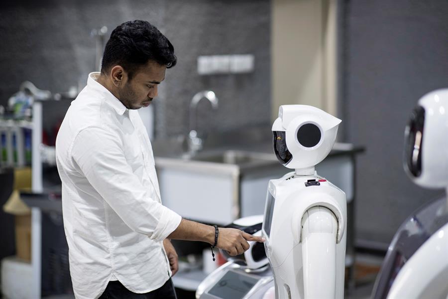 Robots que detectan fiebre, distribuyen desinfectante para las manos, esterilizan espacios, entregan víveres y hasta responden preguntas médicas sobre el coronavirus son la respuesta de algunos negocios de robótica ante el nuevo escenario que se abre con la COVID-19.