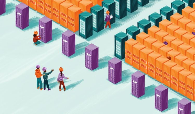 Los superordenadores de inteligencia artificial se construyen combinando múltiples GPU en nodos de cálculo, que luego son conectados por un tejido en red de alto rendimiento para permitir una comunicación rápida entre esas unidades.