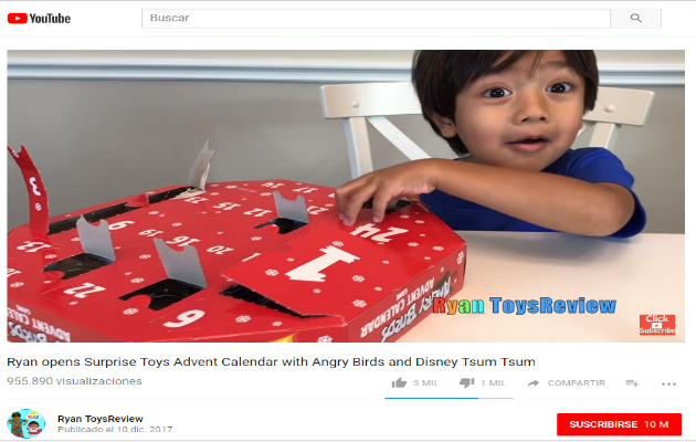 Ryan tiene 6 años de edad y durante el último año recibió unos $11 millones en regalías que generan las miles de millones de reproducciones en su canal Ryan ToysReview, en donde el pequeño recibe regalos sorpresas y ponerse a jugar con ellos.