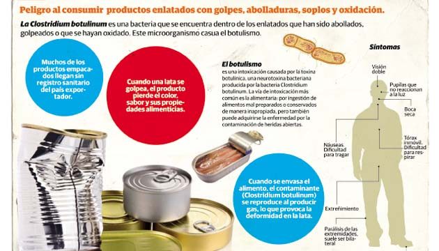 El consumo de un producto enlatado con golpes puede causar botulismo, una enfermedad que ocasiona náuseas, visión borrosa y debilidad.