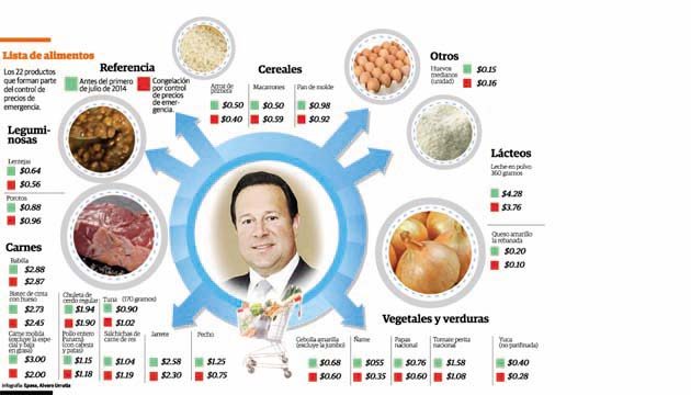 “Al establecer un precio máximo de venta de 22 productos en promedio estamos logrando una reducción de $58 en el costo de la canasta básica de alimentos, que va a favorecer especialmente a la población que compra en las abarroterías o tiendas de barrios”, fue la declaración del presidente Juan Carlos Varela.