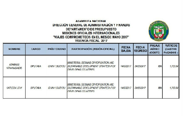 Un desembolso superior a los 44 mil dólares fue el costo en concepto de estos viáticos que dio el Legislativo al grupo de diputados como Juan Poveda (CD), Iván Picota (PRD), Rosa Canto (PRD), Néstor Guardia (PRD), Roberto Ayala (PRD), Florentino Ábrego (Panameñista), Athenas Athanasiadis (PRD) y Katleen Levy (Panameñista).