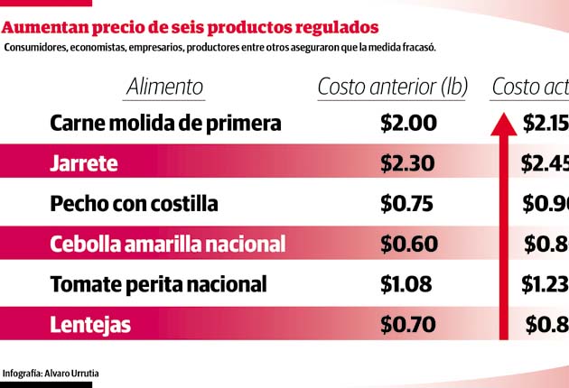 De acuerdo con la evaluación de la Comisión de Ajustes de Precios, resultó necesaria la modificación del costo de tres productos agrícolas, así como de tres cortes de carne, que en total ascendieron a unos $0.95, lo que aleja a los consumidores de ahorrarse los $58 prometidos en campaña electoral.