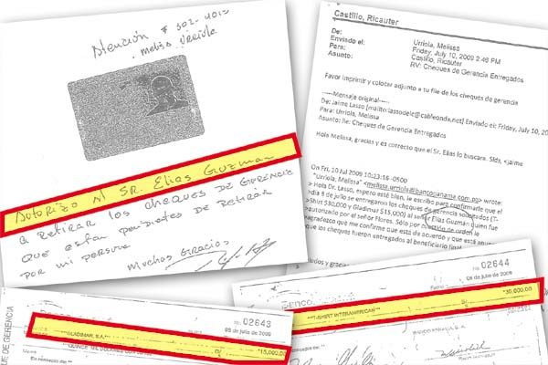 Fue así que el 8 de julio de 2009 se entregó a Guzmán el cheque de gerencia N°. 02643 para el pago de 15 mil dólares a Gladimar S.A. El mismo día se entregó otro cheque de gerencia a Guzmán, esta vez por 30 mil dólares para la empresa T-Shirt Interamerican.