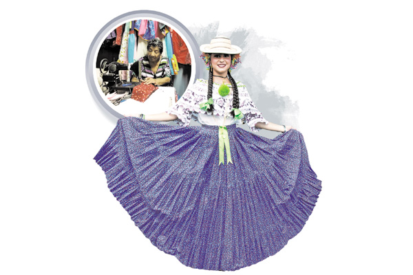 Ella confecciona polle tiene todo el estilo de la pollera convencional o de lujo, pero no es la bordada. También hace la montuna, que va con blusa, al igual que la va con la basquiña.