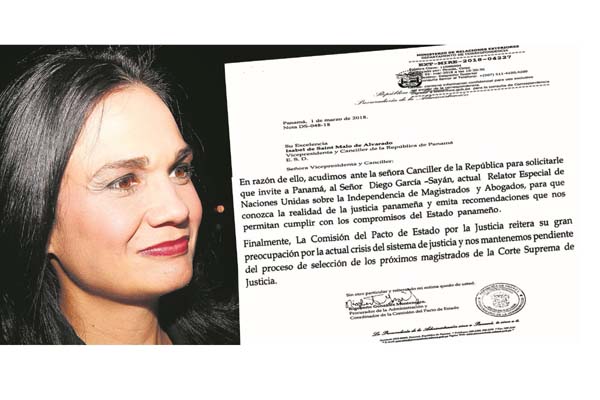 Ante la crisis que vive Panamá en materia de justicia, el procurador de la administración, Rigoberto González, como coordinador de la Comisión de Estado por la Justicia, pidió a la vicepresidenta y canciller, Isabel de Saint Malo de Alvarado, que invite al país al relator especial de la ONU sobre la independencia de magistrados y abogados.