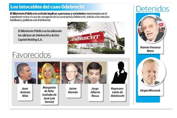En el expediente se mencionan al bufete Rosas y Rosas, propiedad del diputado Jorge Alberto Rosas; la firma Icaza González - Ruiz & Alemán; y la firma Jaime Alemán, Cordero, Galindo & Lee, que tiene como representante al exembajador Jaime Alemán, que habría recibido $2.3 millones de la sociedad Active Capital Group., una de las compañías destacadas en las pesquisas de Suiza.