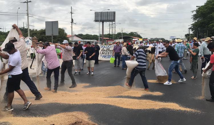 Los productores agropecuarios de las provincias de Herrera, Coclé y Veraguas, trasladaron ayer sus faenas diarias del campo a plena mitad de la vía Interamericana, en la región central del país.