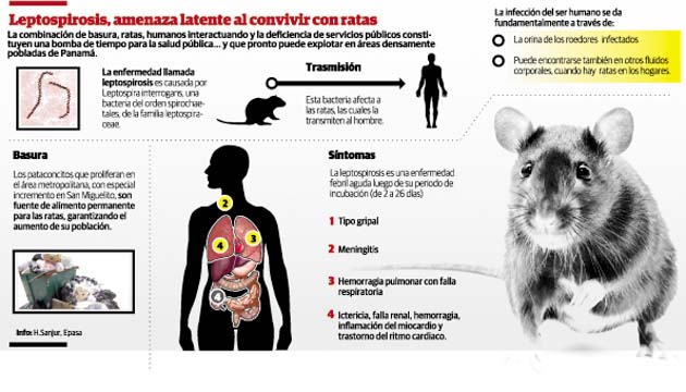 La basura en San Miguelito se ha salido de control. Esto, aunado a una invasión confirmada de ratas (secuela de los pataconcitos) y a la deficiencia de los servicios públicos en algunos sectores, ha provocado que el Ministerio de Salud (Minsa) reconozca que están todas las condiciones para que se dé un peligroso brote de leptospirosis o de Hantavirus.