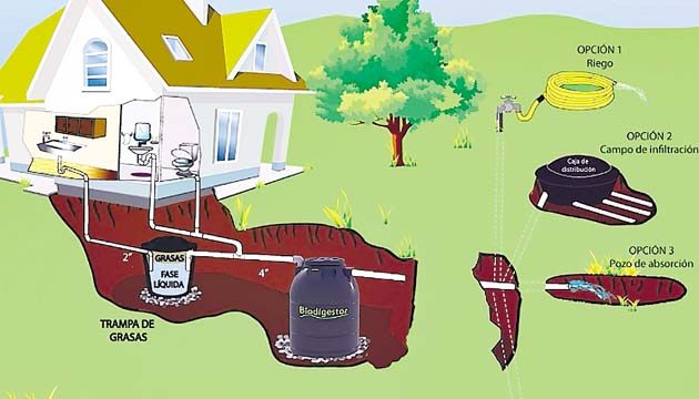 El sistema recibe los sólidos, los separa de los líquidos que pasan a través de una tubería de procesamiento y filtración y finalmente terminan en un pozo ciego, donde terminan de percolar en el subsuelo sin los contaminantes sólidos y sin resto de grasas.