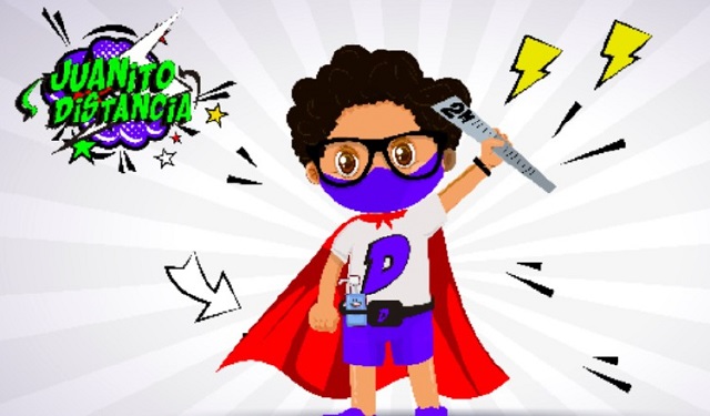 "Juanito Distancia" es el superhéroe que se adentra en las comunidades para recordar las medidas sanitarias para evitar los contagios, tiene seis años, la cantidad de pasos que debe haber entre las personas para mantener el distanciamiento físico y disminuir el riesgo de contagio.