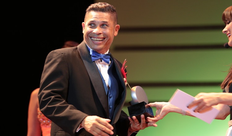 Daniel Gómez Nates cuando recibe uno de los premios Escena a que se ha hecho acreedor en su carrera teatral. Archivo Panamá América.